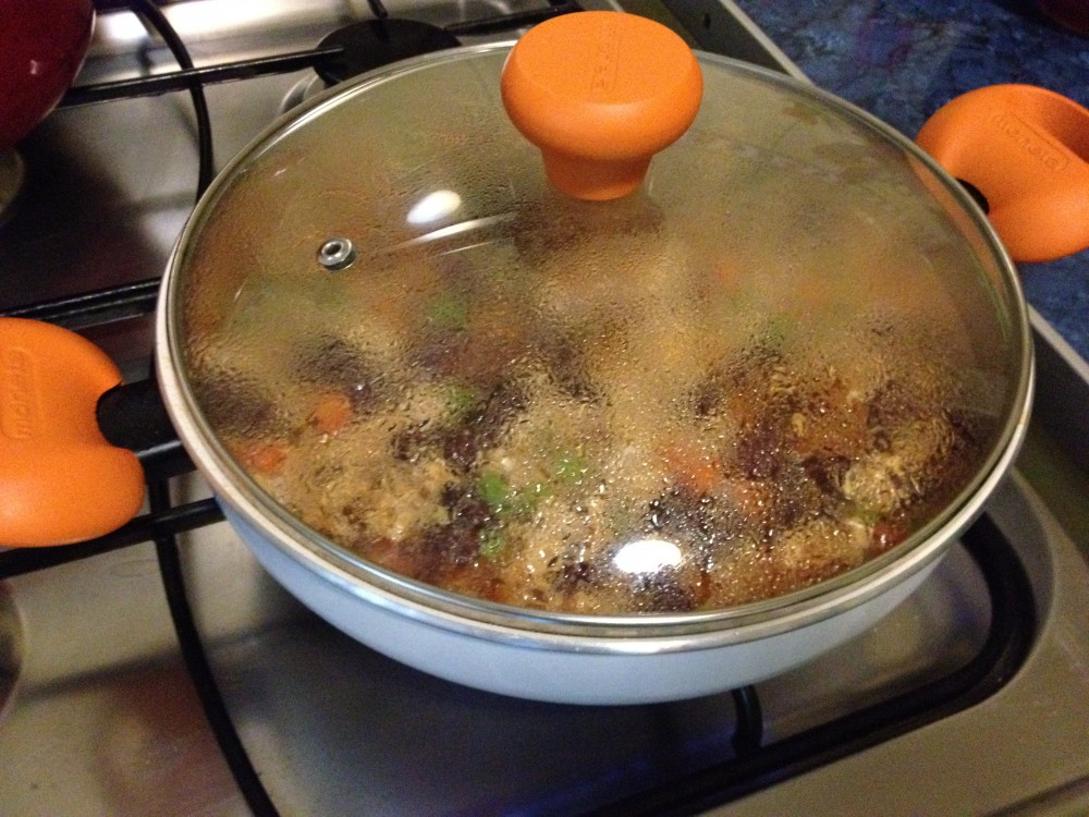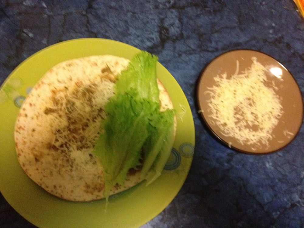 In cateva linguri de ulei de masline se caleste usturoiul zdrobit impreuna cu ceapa tocata marunt,se adauga carnea tocata ,apoi se pune putina apa si se lasa sa fiarba inabusit pana scade.Se adauga mazarea si morcovii congelati ,iar spre finalul fierberii - conserva de fasole mexicana.Cand compozitia a scazut se adauga cateva linguri de salsa de rosii (preparata anterior din rosii tocate marunt impreuna cu piper Cayenne,sare,busuioc si usturoi), se mai lasa sa se omogenizeze ingredientele si se inlatura de pe foc.Foile de tortilla se pot unge optional cu pesto sau cu salsa de avocado,se incalzesc la cuptorul cu microunde impachetate in hartie cerata pentru a nu se usca. Cat sunt calde se presoara cascaval ras,cateva foi de salata verde si cateva linguri din copozitia de carne.Se impacheteaza rulandu-se.se pot servi cu orice fel de salsa alaturi ,dupa gust .Buen apetito!