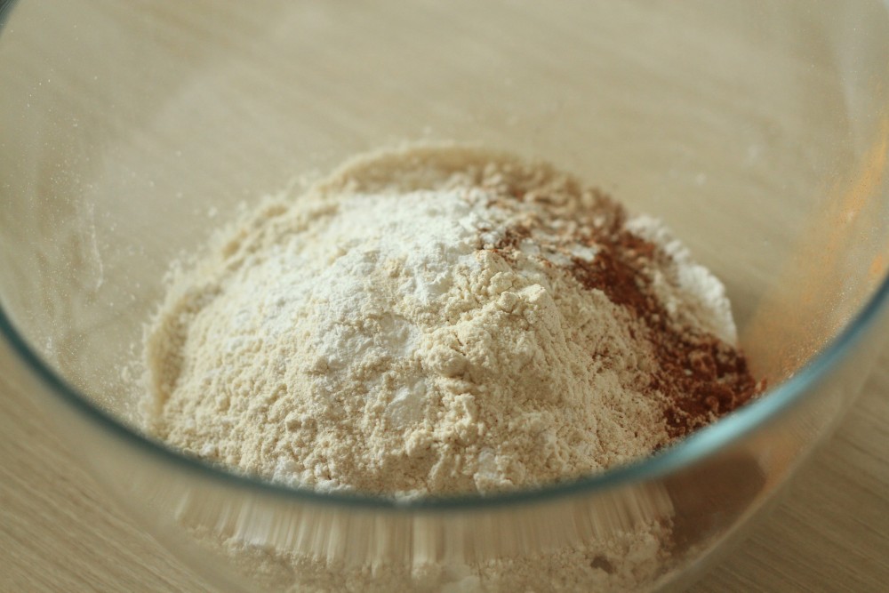 Amestecul uscat: se adaugă într-un bol și se amestecă - făina, sarea, praful de copt, scorțișoara, vanilia, amoniac de sodiu.Crema:
