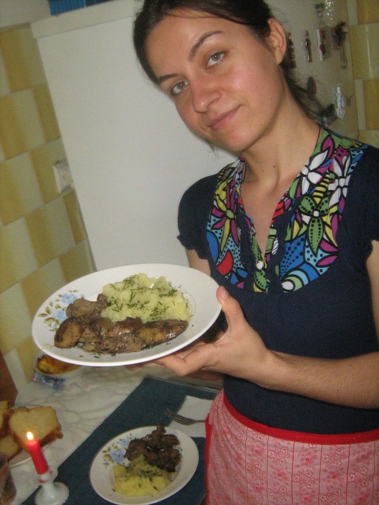 1 kg ficatei de pasare;2 kg cartofi noi;