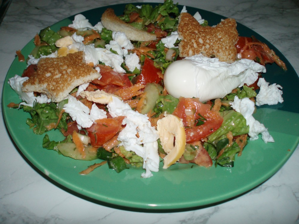 Se pune la fiert 1l de apa si se adauga 1 1/2 lingura otet. Cand clocoteste apa cu ajutorul unui polonic se da drumu usor oului in apa. Se rade morcovul si se tai restul legumelor. Se adauga apoi sosul si salata se aranjeaza in farfurie. Se serveste cu toast.Analiza ingredientelor rețetei Salată cu ochiuri românești: