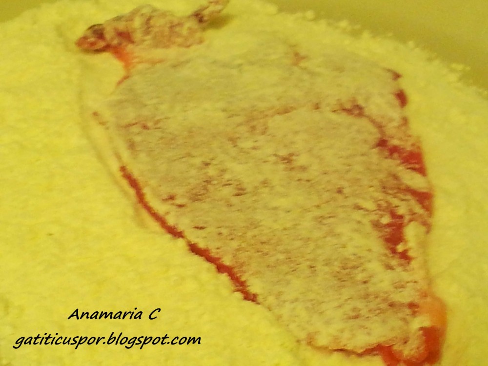 Puneti faina pe o farfurie intinsa, dati carnea prin faiana apoi prin ou si prajiti in putin ulei pe ambele parti pana ce se formeaza o crusta crocanta si aurie.