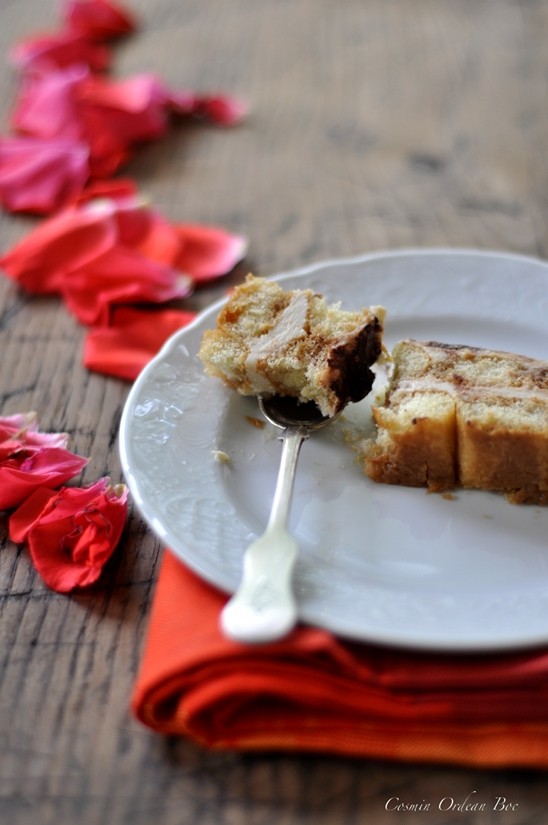 Adaugam amestecul racit (va rog sa nu faceti ca mine si din lipsa de timp sa-l turnati fierbinte...!) peste mascarpone , mestecand bine pana se omogenizeaza si folosim jumatate din cantitate sa acoperim piscoturile.